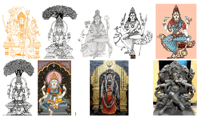 ദേവിക്കായി സമർപ്പിച്ചിരിക്കുന്ന ശ്രീകോവിലിനു മുന്നിലാണ് സപ്താമത്രുക്കലിന്റെ ഉപക്ഷേത്രം. സപ്താമത്രുക്കലിന്റെ വിഗ്രഹങ്ങളിൽ ആദ്യം ചാമുണ്ടി എന്ന നിലയിലും ബ്രാഹ്മി, മഹേശ്വരി, കൗമാരി, വൈഷ്ണവി, വാരാഹി, ഇന്ദ്രാണി എന്നിവ വടക്ക് അഭിമുഖമായും വീരഭദ്രൻ പടിഞ്ഞാറോട്ടും ഗണപതി കിഴക്ക് അഭിമുഖമായും ക്രമത്തിലാണ്. പടിഞ്ഞാറ് അഭിമുഖീകരിക്കുന്ന ക്ഷേത്രപാലൻ, കിഴക്ക് അഭിമുഖമായി നിൽക്കുന്ന ശാസ്തപാലൻ, ശ്രീ പാതാള ഭദ്ര, ശ്രീ ഭൈരവി, ശ്രീ ഭൈരവൻ എന്നിവരാണെന്ന് കരുതുന്ന വിഗ്രഹങ്ങളും മറ്റ് ഉപ നിക്ഷേപങ്ങളാണ്.